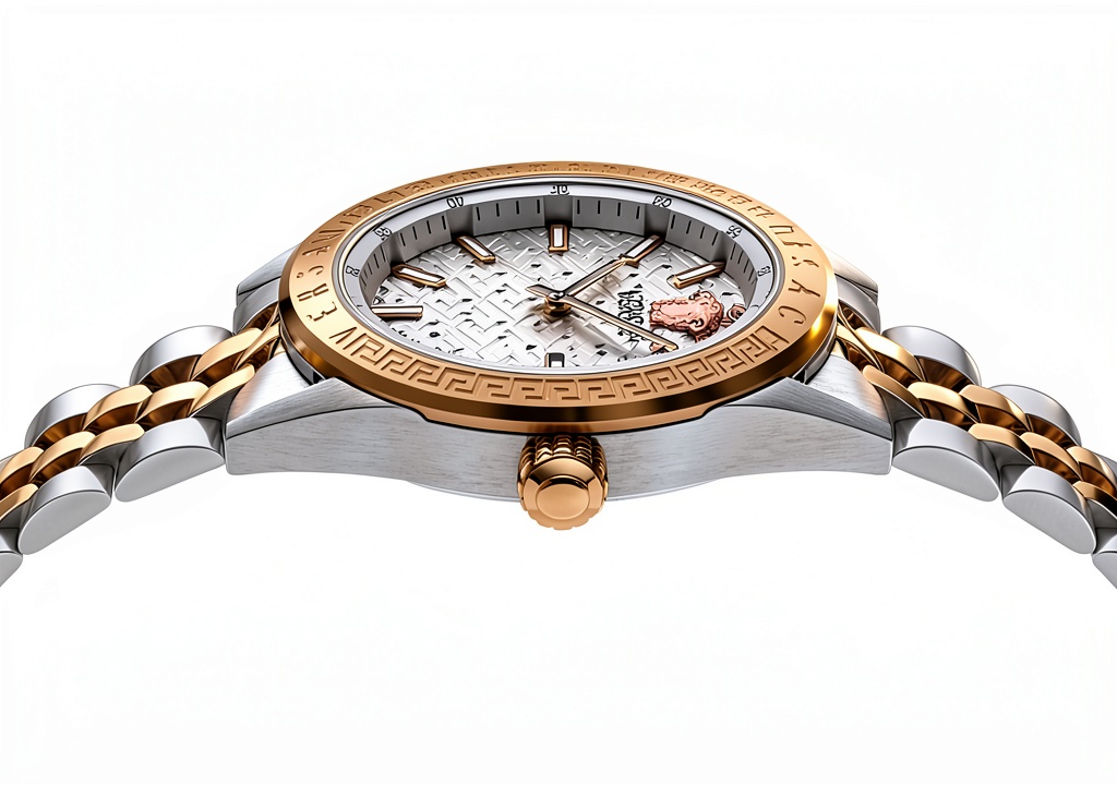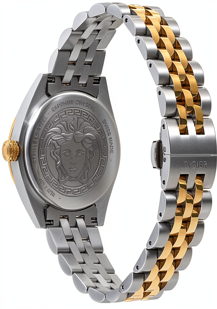Versace’s reputation for high-end craftsmanship and iconic design sets this watch apart, offering a blend of aesthetic appeal and functional durability. The two-tone construction and silver guilloche dial demonstrate attention to detail, while the competitive pricing compared to the MSRP of $1195 provides exceptional value. Backed by a manufacturer warranty, this product ensures long-term satisfaction and trust in a brand known for luxury and innovation.